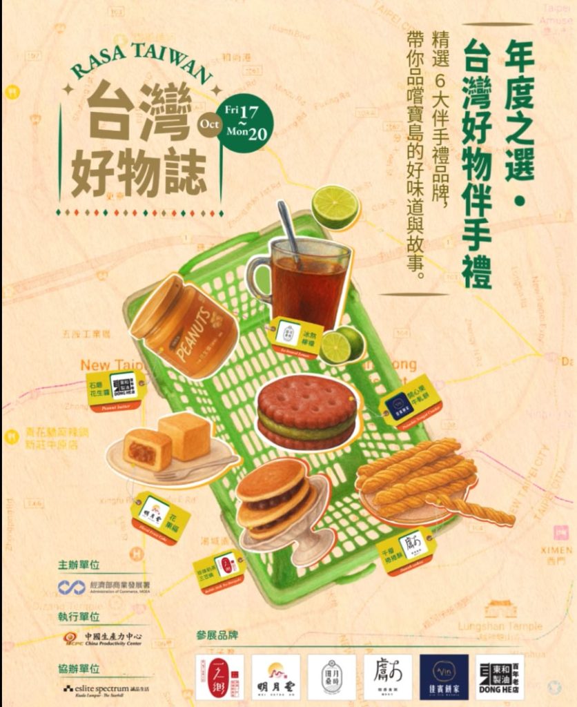 本次活动以「台湾味 × 礼物文化」为核心主题,邀请六家来自台湾的原创伴手礼品牌,包括明月堂、献烘焙、一之乡、佳宾饼家、东和制油与田月桑时,来马展出与快闪贩售,时间是2025年10月17日(五)至10月20日(一),在诚品生活吉隆坡(eslite spectrum Kuala Lumpur)登场!现场皆可免费试吃与选购,完整呈现宝岛风味与职人精神。