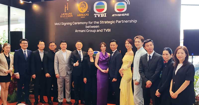 阿玛尼集团(Armani Group)与香港知名传媒企业电视广播(国际)有限公司 (TVBI Company Limited ) 昨日签署战略合作备忘录(MoU),宣布正式携手为购房者带来独家生活与娱乐体验, TVB艺人姚子羚(Elaine Yiu)、黄子恒(Hugo Wong )和陈晓华(Hera Chan)亲临现场见证,并接受媒体访问。