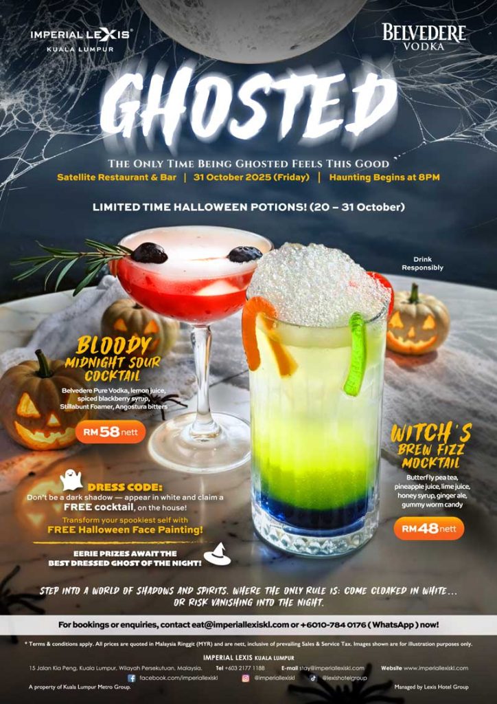 万圣节其实很有趣,别把它想得可怕,除了cosplay 还有很大稀奇古怪的美食让你眼界大开!2025年10月31日(星期五),吉隆坡帝国丽昇酒店的Satellite餐厅及酒吧,诚邀寻求刺激的宾客登上其屋顶参加“幽灵派对” (GHOSTED),一场全白的万圣节晚会,在令人叹为观止的城市天际线映衬下,怪诞与优雅交织。