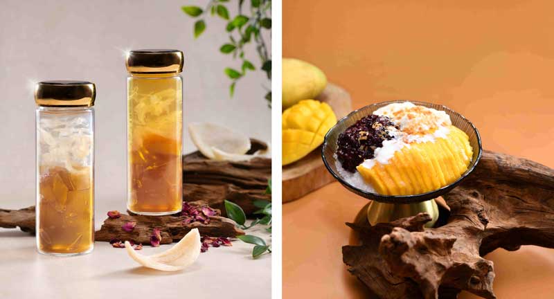 该品牌传承“膳”哲学,把中华料理中最珍贵的元素如燕窝、豆腐花、莲子、桃胶、鱼鳞胶原蛋白和椰子融入每一款甜点和饮品设计,即可传承历史悠久的食材和草本智慧来达到滋补的功效,让顾客在追求舌尖的美味,同时也可以平衡健康。