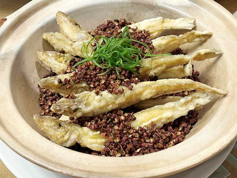 大红袍花椒焗沙嘴鱼 Baked Sand whiting Fish with Szechuan Pepper(RM 88净价)