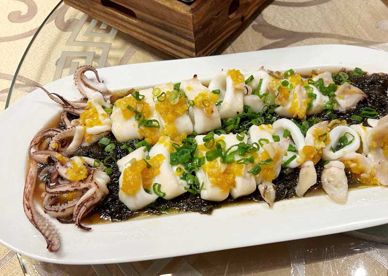 f.黄椒紫菜蒸鲜鱿 Steamed Squid with Pickled Yellow Chili and Chinese Seaweed(RM 78净价)