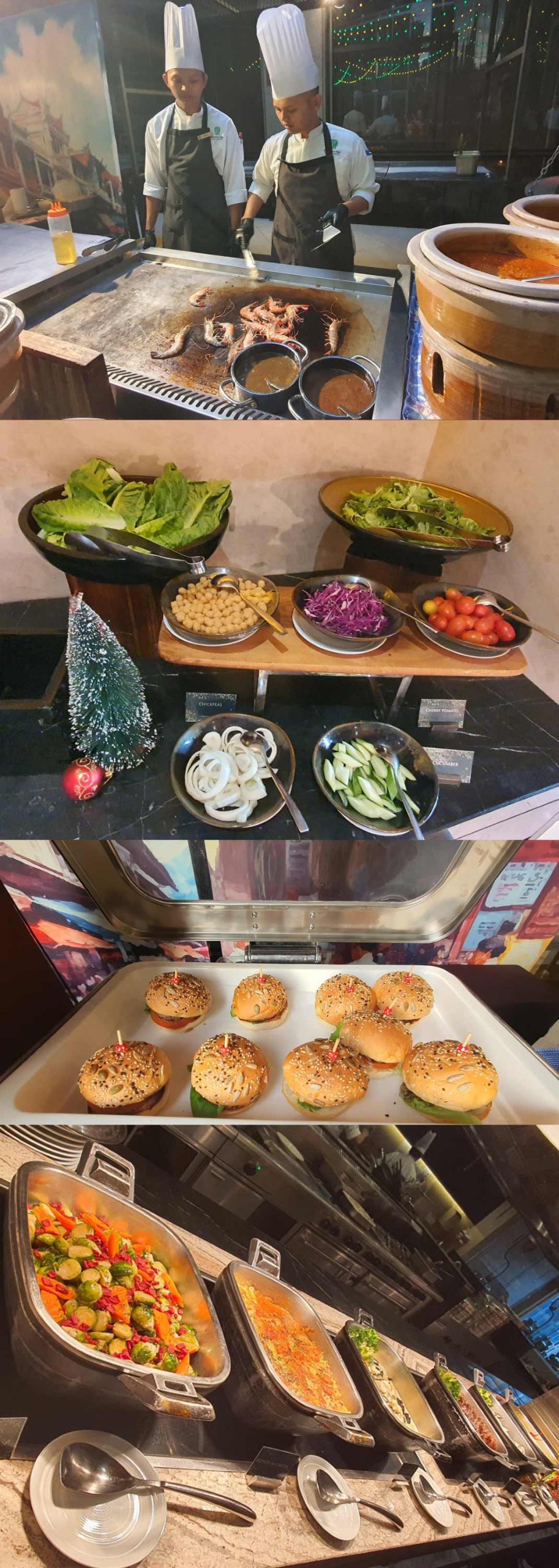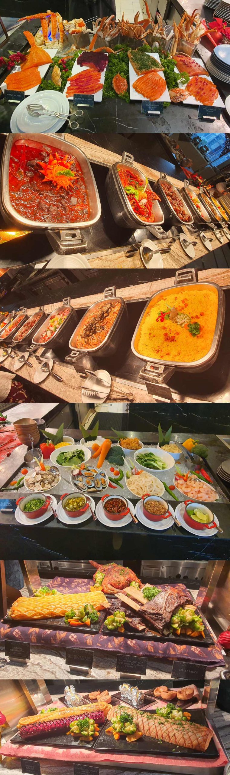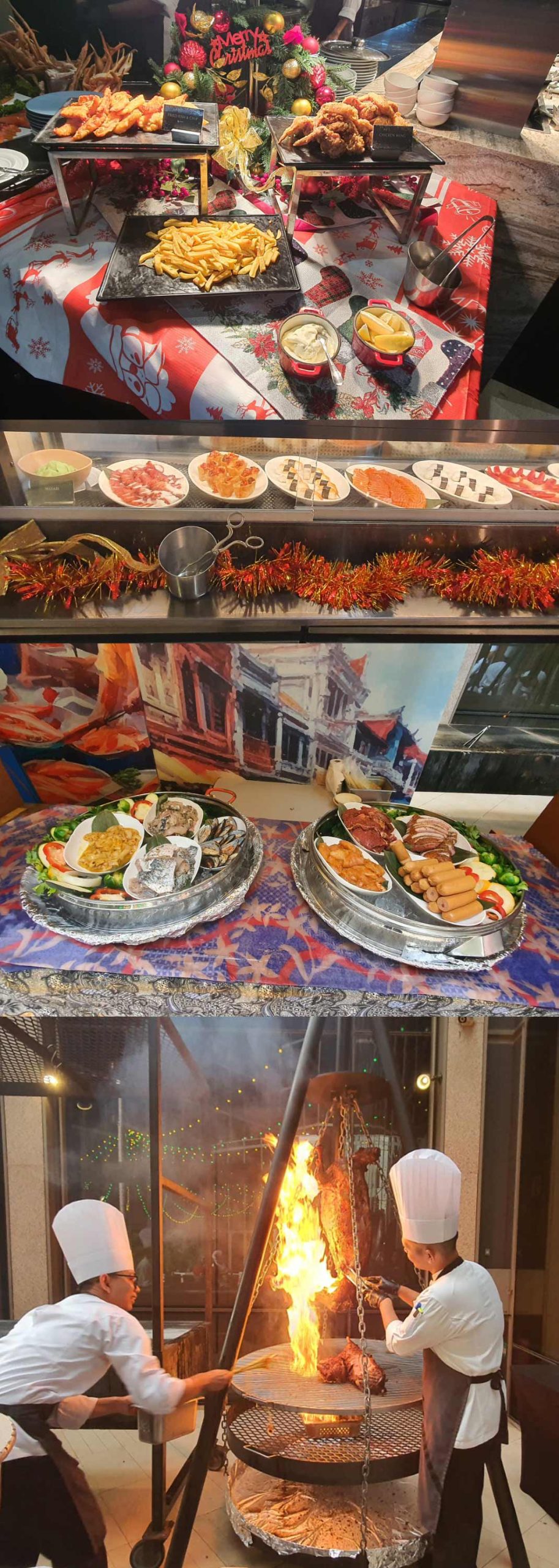 新鲜生蚝、长脚蟹、龙虾、青口、鲜虾、焗羊排等佳肴轮番登场,再搭配免费无限量畅饮的汽水、橙汁、咖啡与茶,当然少不了甜入心扉的圣诞造型糕点与雪糕,为这场节日飨宴增添几分温馨与甜蜜。