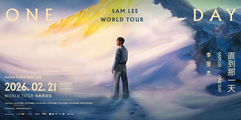 出道27年、以深情嗓⾳征服⽆数乐迷的实⼒唱将李圣杰(Sam Lee),正式宣布将于 2026年2⽉21⽇(星期六) 在 Axiata Arena, Bukit Jalil 举办《One Day 直到那⼀天》世界巡回演唱会 — ⻢来⻄亚站!这也是李圣杰出道以来⾸次在吉隆坡举办个⼈演唱会,意义⾮凡。