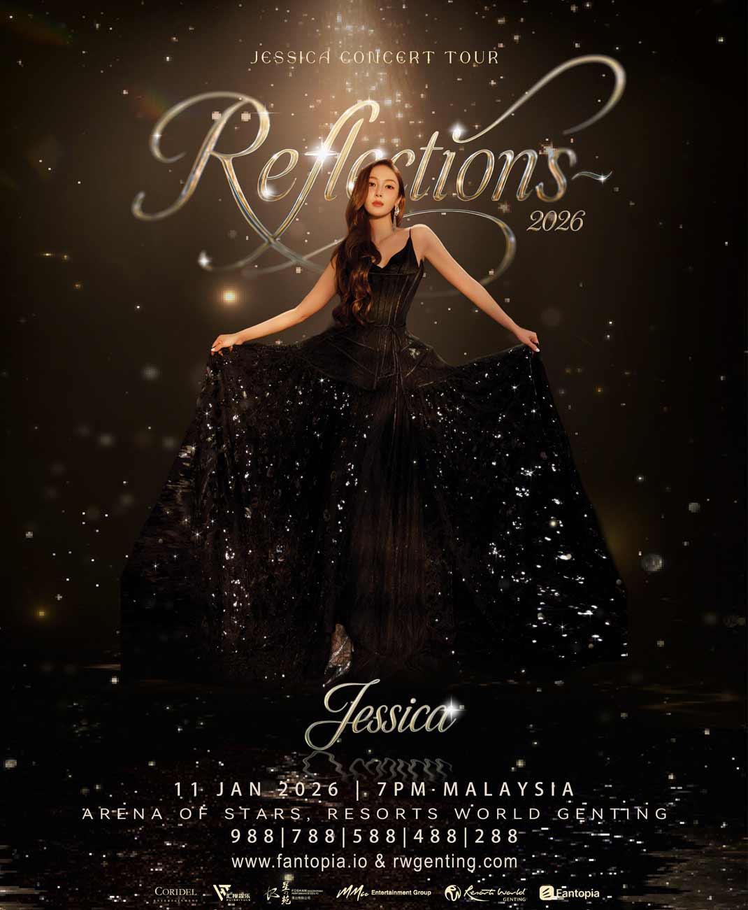 由汇视娱乐主办《Jessica 郑秀妍‘Reflections’ 2026 巡演-马来西亚站》,将于明年 1 月11 日(星期日),晚上 7 时于云顶世界云星剧场热情开唱。票价分别为 988 令吉(VIP)、788 令吉(PS1)、588 令吉(PS2)、488 令吉(PS3)及 288 令吉(PS4),所有门票不包含 4 令吉手续费。演唱会门票将于 11 月 20 日(星期四)下午 3 时起通过售票官网 Fantopia网站 www.fantopia.io 与云顶世界网站 rwgenting.com 发售。