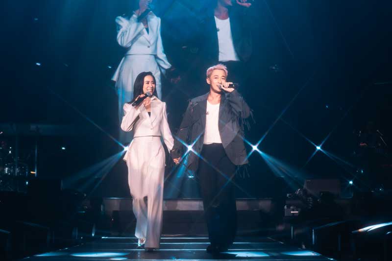 早前就已经有消息说林峯大马站演唱嘉宾是宣萱,这也是观众万分期待的,当宣萱一身白色西装帅气登场时,即刻尖叫声四起,两人同台合唱《爱在记忆中找你》,掀起满满的回忆!