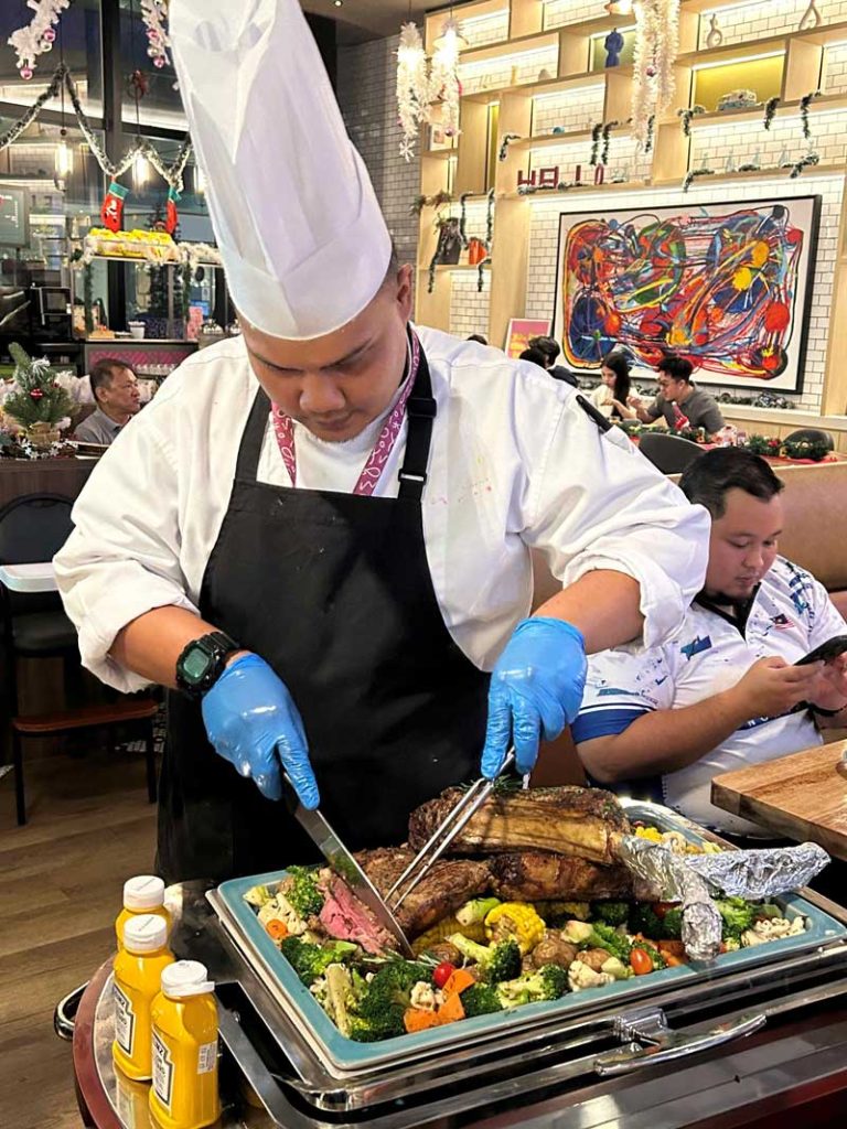 • 现场烤战斧牛排 – 新鲜多汁,现场切割