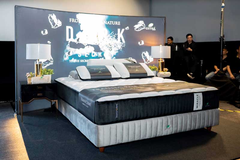 在发布会上,Getha 项目总监 Kevin Tan 解释了为何“Miracle Latex”(注入 Graphite+ 的天然乳胶)优于普通乳胶。他说:“Graphite+ 不仅是卓越的热导体,还能让乳胶更卫生、更有弹性、更耐用。因此,我们的‘黑色秘密’象征着来自地球原始元素的自然力量。”