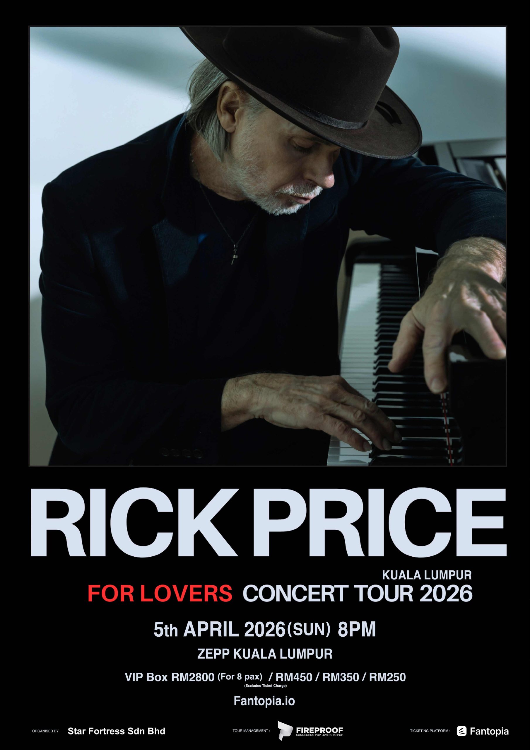 备受喜爱的澳洲创作歌⼿ Rick Price 即将带着他的 《For Lovers》2026 巡迴演唱会登上⻢来⻄亚舞台,并将于 2026 年 4 ⽉ 5 ⽇(星期⽇)晚间 8 点 在 Zepp Kuala Lumpur 深情开唱。