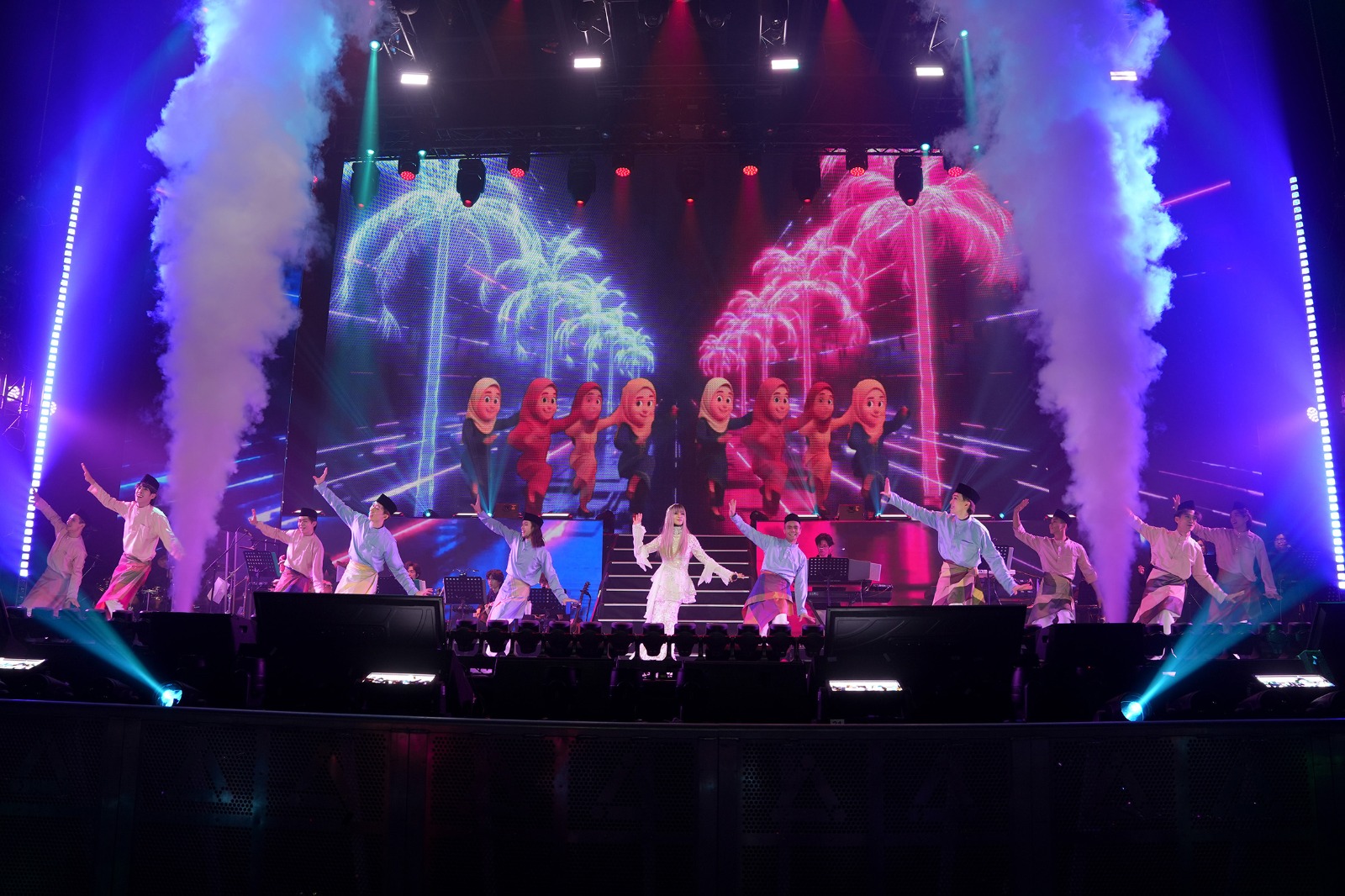 整场演唱会气氛高涨,从开场到尾声几乎没有冷场。熟悉的旋律引发全场大合唱,荧光棒随音乐翻涌成海,尖叫声、掌声此起彼落。每一次高音爆发、每一段情绪转折,都引来观众热烈回应,舞台上下形成强烈共鸣,宛如一场情绪与音乐交融的狂欢。演唱会中段迎来重量级惊喜——马来乐坛资深天后 Fauziah Latif 现身,全场瞬间沸腾。两人首先合唱经典歌曲《Tak Terpisah》,两把实力派嗓音层层交织,情感浓烈而深刻,让观众完全沉浸其中。随后,她们再度携手演绎马来经典《Dia》。钟洁希透露,这首歌正是 Fauziah Latif 一直希望能在舞台上与她合唱的作品,这次终于在《我就是我》演唱会上圆梦,也成为当晚最温馨、最具纪念价值的时刻之一,把这份“第一次”献给粉丝。