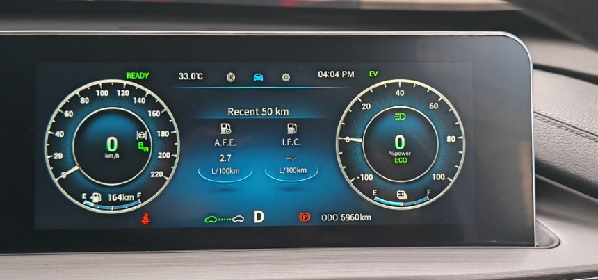纯燃油的涡轮增压版,采用1.5T引擎搭配6速湿式双离合变速箱,低转扭矩充沛,市区起步轻快,Sport模式下加速感明显。转向轻盈精准,适合城市穿梭与偶尔超车。其悬挂调校比较硬朗,能较好过滤坑洼但保留路感,反馈清晰。时速超过110时,车身稍显浮动,风噪与胎噪会渗入舱内,整体更像“热血青年”——开起来有乐趣,适合喜欢手动干预、追求纯粹驾驶感的买家。但DCT在低速走停时偶有轻微顿挫,需适应。