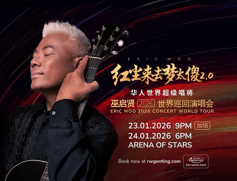 继早前演唱会官宣后获得歌迷热烈反应,巫启贤确认将于 2026年1月23日,星期五晚上9时,为《红尘来去梦太傻》2026 世界巡回演唱会马来西亚站加开一场演出!