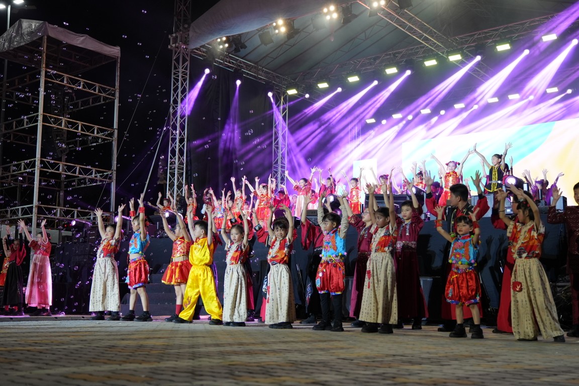 《好声Family》第六季幼年组及成年组冠军得主萧睿琛、邓慧琳和林坦燕登台献唱《阿嬷的话》,老、中、青三代同台演绎,让台下不少观众动容落泪,就连李佩玲与车子也忍不住掏出纸巾拭泪,场面温馨感人。此外,逾百位来自瓜拉庇劳中华国民型华文小学的学生齐跳首要媒体历年贺岁曲串烧;瓜拉庇朥中华国民型华文中学的学生则身穿汉服呈现国风舞蹈,场面相当壮观。