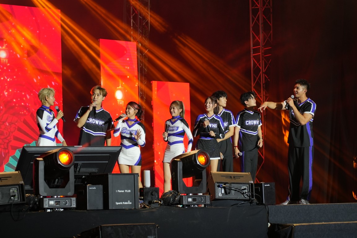 另一方面,Orange陈慧恬与Rickman谢承伟带领Minsley曾谊雯、Loh罗辰昱、Emily蔡瀞萱、朱宇婕、Houson黄侯升和Bryan林宏彦,首次与国家竞技啦啦队合作表演。其中,蔡瀞萱、曾谊雯和朱宇婕挑战高难度托举动作,三人纷纷表示害怕:“一开始被抬上去的时候,我们喊得很大声!”蔡瀞萱则幽默分享:“我在上面唱到我唱不了的高音。”同时还不忘调侃一旁的罗辰昱:“这次站在上面,终于可以比他高!”