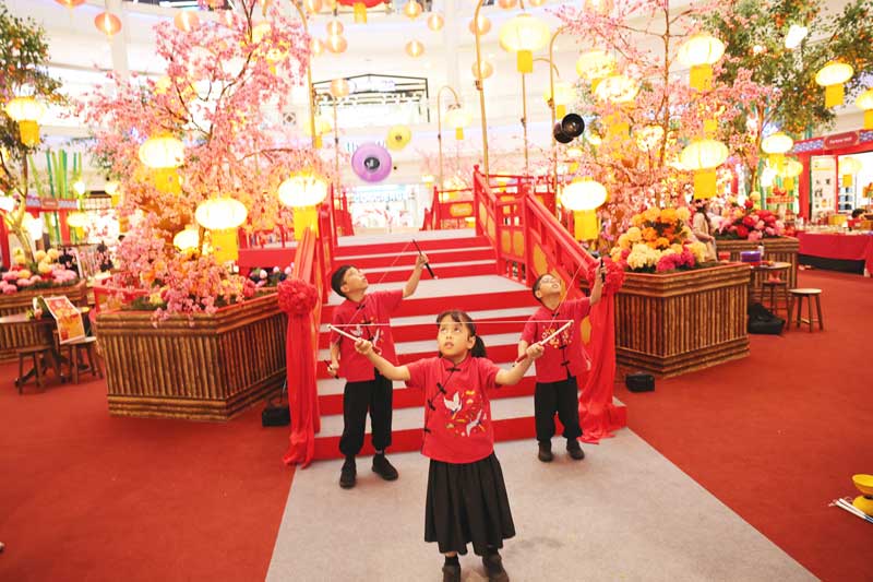 一系列精彩纷呈的文化表演和互动体验将为“财神村”注入活力,旨在为各个年龄段的宾客带来欢乐。购物者可以期待吉祥的财神爷巡游和活力四射的舞狮表演,寓意着来年好运连连、财源广进。传统艺术表演精彩纷呈,包括变脸、中国扇舞和灯笼仙子舞,而才华横溢的年轻表演者们也以活力四射的空竹表演令观众眼前一亮。此外,小朋友们还可以在“小小幸运”手工坊体验动手制作的乐趣。