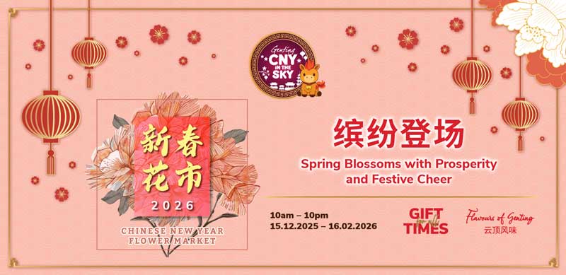 云顶世界标志性的新春花市将于2025年12月15日至2026年2月16日在SkyAvenue隆重回归,把商场打造成充满彩色、动感与新春氛围十足的购物空间。由云顶风味(Flavours of Genting)精心策划,汇聚各式节庆点心、饼干、即食佳品、礼篮、新春装饰品及农历新年必备好物,让宾客在浓厚的喜庆氛围为新年选购心意之礼。