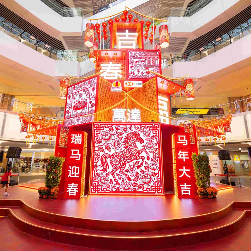 本次农历新年庆祝活动以传统剪纸艺术和优雅的中国扇子为灵感,呈现精美的装置艺术、引人入胜的表演和丰富多彩的活动,让顾客沉浸于节日氛围,与家人朋友共创难忘回忆。