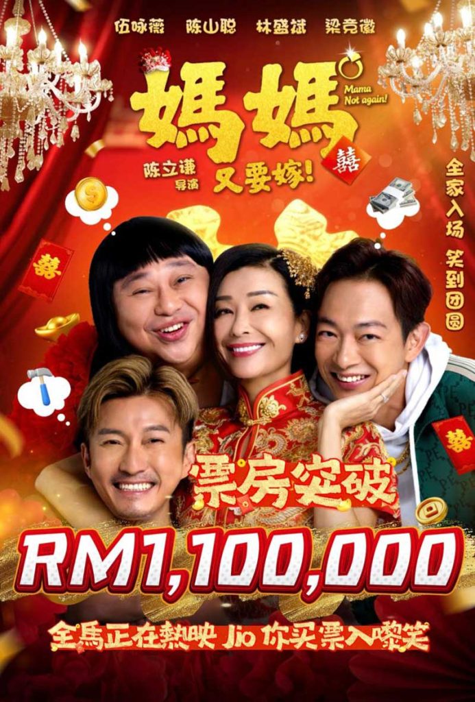 由陈立谦执导、梁烈唯(唯唯)、「视帝」陈山聪、Bob林盛斌(、伍咏薇及冯玮佺等合演的马港贺岁片《妈妈,又要嫁!》于大年初一(2月17日)欢乐上映!在一众艺人马不停蹄跑足宣传、新年期间勤力谢票带动下,票房现已突破 110万(截止至18日,晚上8时),成绩报捷,可喜可贺!阿Bob兴奋直呼:“开心到爆炸!”更笑言要准备带更多利是(红包)派给大家,为观众送上双重祝福!