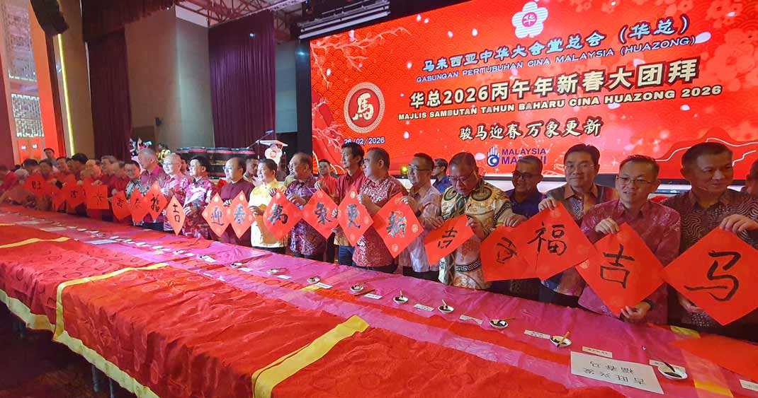 以“骏马迎春.万象更新”为主题的华总2026年新春大团拜,于今天农历正月初十(26日)中午举行,超过一千名嘉宾,包括内阁正副部长、党团领袖、华社华团和商企领导以及各州华堂各机构等受邀出席大团拜年,大家互相贺年交流,热闹欢愉。