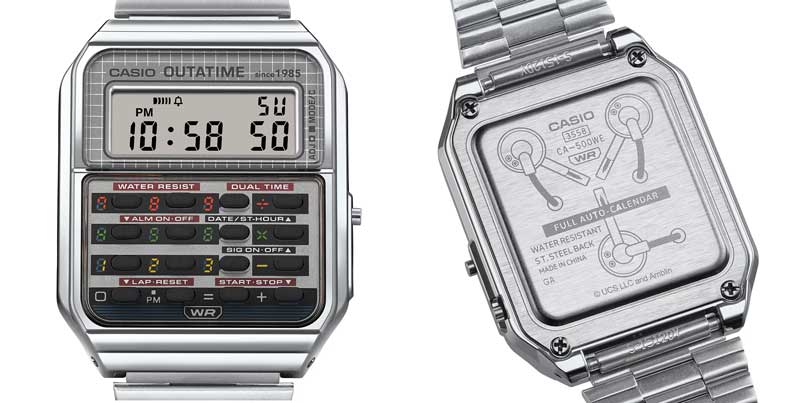 CA-500 是卡西欧广受欢迎的计算器型号,如今和 20 世纪 80 年代一样备受喜爱,此次以《回到未来》中的德罗宁 (DeLorean) 为主题。按钮周围的不同颜色令人联想到德罗宁汽车用于设置目的地日期和时间的时间回路,每次都能带您进入电影世界。