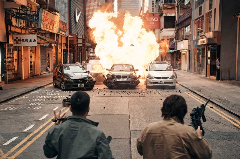 为追求极致的真实感,剧组特别选址香港尖沙咀加连威老道进行实景拍摄,将人潮汹涌的街头化为枪林弹雨的战场。大量枪械装备配合连环爆破,枪声震天、火光四起,震撼程度直逼好莱坞级动作场面。