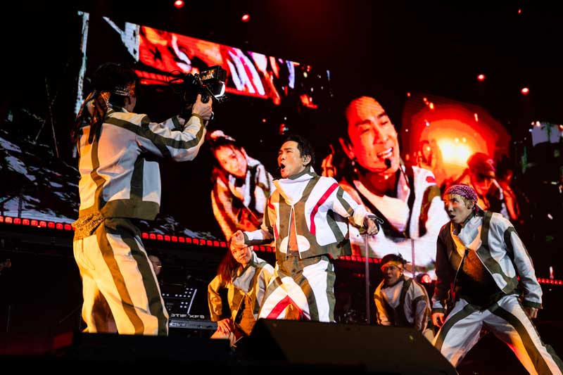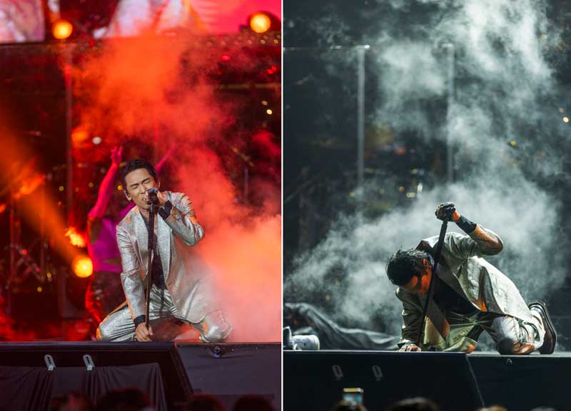 今年也是杜德伟出道40周年,他在舞台上依旧活力十足,整晚火力全开。从《黑日》、《Believe》、《爱你爱得不寻常》动感舞曲一首接一首,工作人员立刻递上水和准备的氧气罐,但他也没有用上。