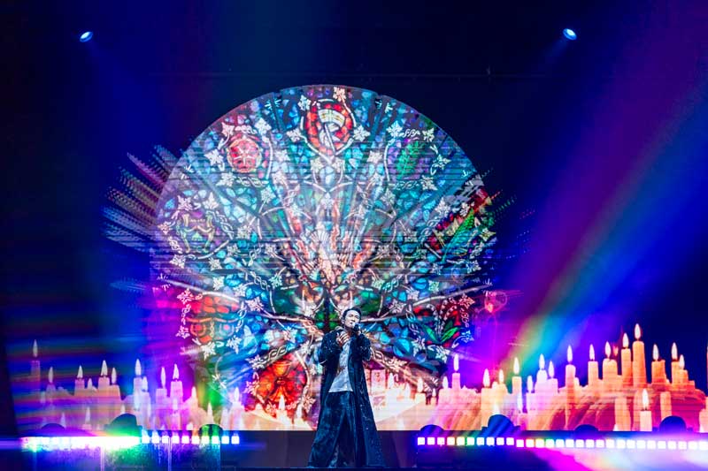 从节奏强劲的舞曲到深情款款的情歌《忘情号》、《Because I love you》,并带大家回到23岁参加新秀得奖的那一幕,演绎当时让他踏入歌坛《Hello》,歌迷情绪被瞬间点燃。