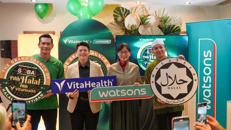配合神圣的斋戒月,VitaHealth 与 Watsons 携手推出“选择清真,选VitaHealth”(Pilih Halal, Pilih VitaHealth)运动,再次巩固其在清真认证保健品领域的领导地位。活动于 Dancing Fish, Bangsar Shopping Centre 举行,并由 VitaHealth 马新区域首席执行官马钦樉博士,联同 Watsons Malaysia 贸易总监傅慧洁在 Fahrin Ahmad 先生,马来西亚著名电视主持人兼演员,以及 Muallim Muda Shamsul Aiman 先生的亲临见证下共同主持了推介仪式。此次活动象征着品牌持续致力于为马来西亚消费者提供品质保障的清真保健品。