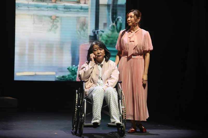 在演出中,老戏骨林奕廷及吕爱琼的演出依旧牵引全场情绪,堪称最大亮点。尤其林奕廷饰演一位带着遗憾离世的母亲,在轮椅上充满唏嘘、回望人生的片段,层层情绪堆叠,直击人心,催泪指数爆表。她与饰演儿子“傅凡”的陈星福,对戏充满了化学作用,情感张力更上一层楼。
