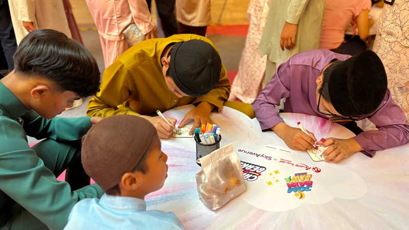 孩子们在云顶世界度过了充实而难忘的一天,行程从乘坐风景优美的缆车开启,到畅玩云顶天城室内主题乐园,体验多项精彩游乐设施。随后,在 Jom Makan Street Food 享用开斋节 Rumah Terbuka 午宴,在清爽怡人的山上感受热情款待。云顶世界还为孩子们安排了一系列互动体验,包括与 Cheer Bear 和 Grumpy Bear 见面互动,以及参与杯垫彩绘工作坊,激发孩子们的创意与表达能力。这些精心设计的活动为孩子们带来欢笑与快乐,让他们沉浸在充满关怀与喜悦的节日氛围中。