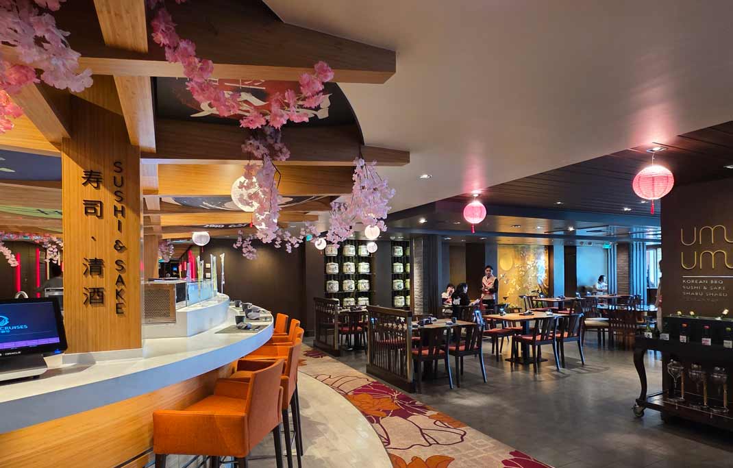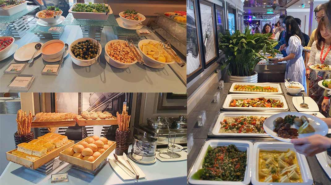 在餐饮方面,邮轮设有清真认证餐厅和耆那教素食餐饮选择,并提供多款马来西亚特色美食,如槟城炒粿条与福建面等,借此向来自全球超过50个国家的旅客推广亚洲饮食文化。