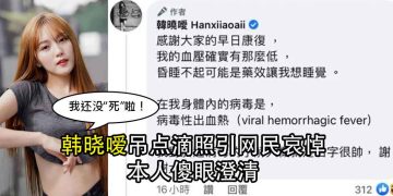 韩晓嗳“昏睡不醒”传死讯 网民哀悼惹本人出面回应