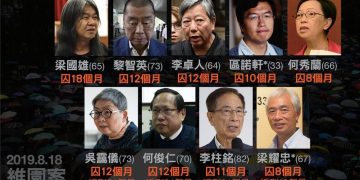 黎智英等9人全部罪成,被香港法庭判入狱8至18个月