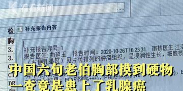 中国六旬老伯胸部摸到硬物 一查竟是患上了乳腺癌