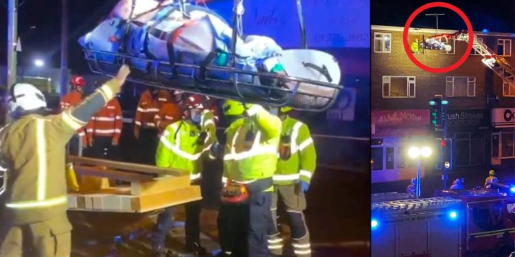 英国300公斤男子被起重机吊离居所,责怪外卖软件害自己吃太多