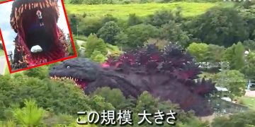 日本兵库现等比例哥斯拉 游客可吊威亚进入“血盆大口”