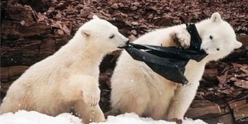 小北极熊抢吃垃圾袋 人类无耻行为伤害动物