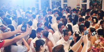 菲律宾集体婚礼设防 220对新人戴口罩亲吻