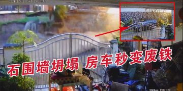 【附视频】石围墙无预警坍塌 房车秒变废铁