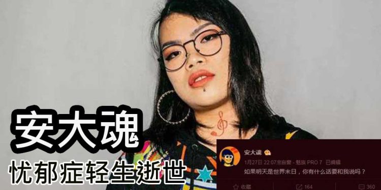 因忧郁症缠身 中国饶舌女歌手轻生逝世