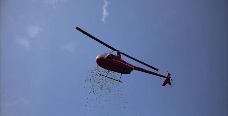 发生什么事了?直升机竟然撒红包雨,宾客全疯了