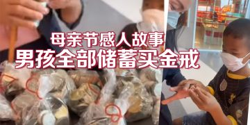 男孩母亲节送惊喜 拎一箱零钱带妈妈买金戒