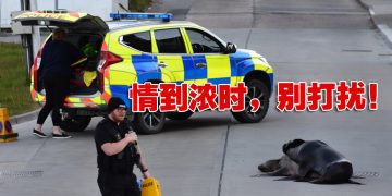 海狮夫妇路中央秀恩爱 警察封街帮忙完事