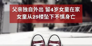 父亲外出购物 女童独自在家爬椅不慎坠29楼!