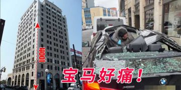 男子寻死9楼跳下没死 却把宝马砸得粉碎