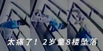 父母在忙2岁童跑出门 爬栏杆失去重心……