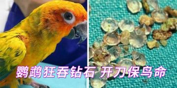 鹦鹉狂吞21颗钻石 送院开刀保“鸟命”