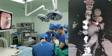 老翁鱼骨卡气管60年 医生取出状似“鸡腿”