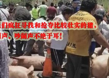 可怜的猪!墨西哥运猪车侧翻 20吨活猪遭村民疯抢