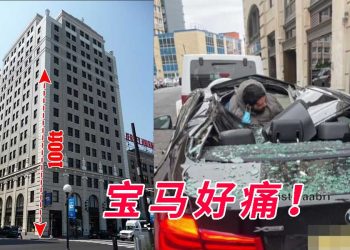 男子寻死9楼跳下没死 却把宝马砸得粉碎